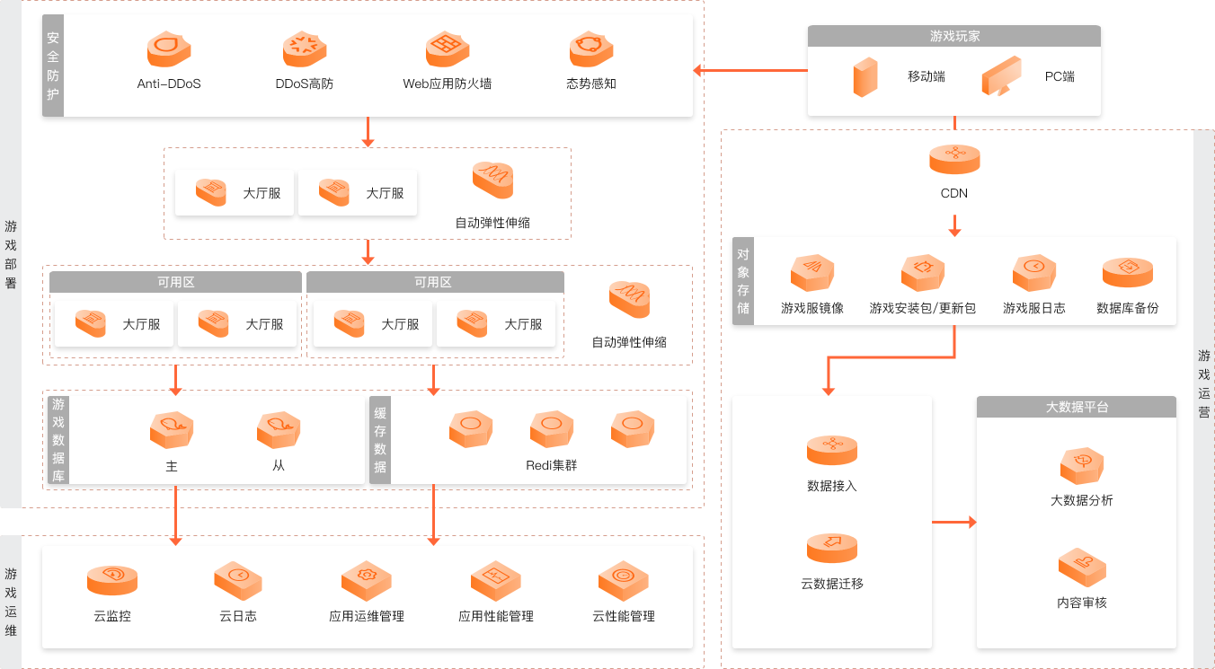 主题云的高性能云服务器使游戏部署高效稳定,RDS数据库满足游戏场景的高并发高可用需求,助力游戏企业打造高品质、全方位生态的游戏服务平台。